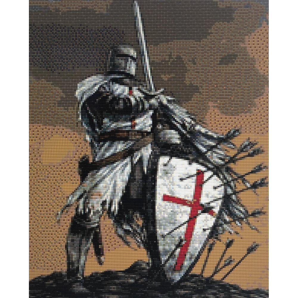 A full diamond 5D painting, each kit has a self adhesive painting with symbols and letters printed in the picture, a full set of diamonds to complete the picture, one applicator with a glue pad to help pick the diamonds up and a tray to hold the diamonds,