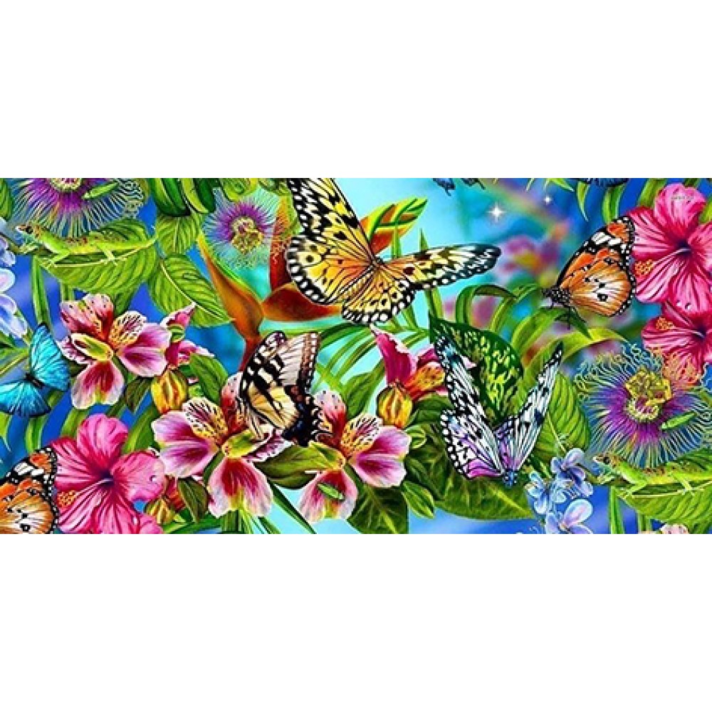 A full diamond 5D painting, each kit has a self adhesive painting with symbols and letters printed in the picture, a full set of diamonds to complete the picture, one applicator with a glue pad to help pick the diamonds up and a tray to hold the diamonds,