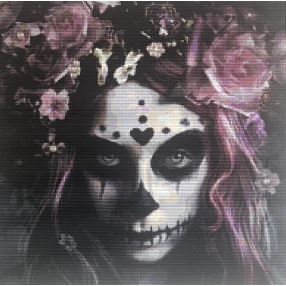 A full diamond 5D painting, each kit has a self adhesive painting with symbols and letters printed in the picture, a full set of diamonds to complete the picture, one applicator with a glue pad to help pick the diamonds up and a tray to hold the diamonds,