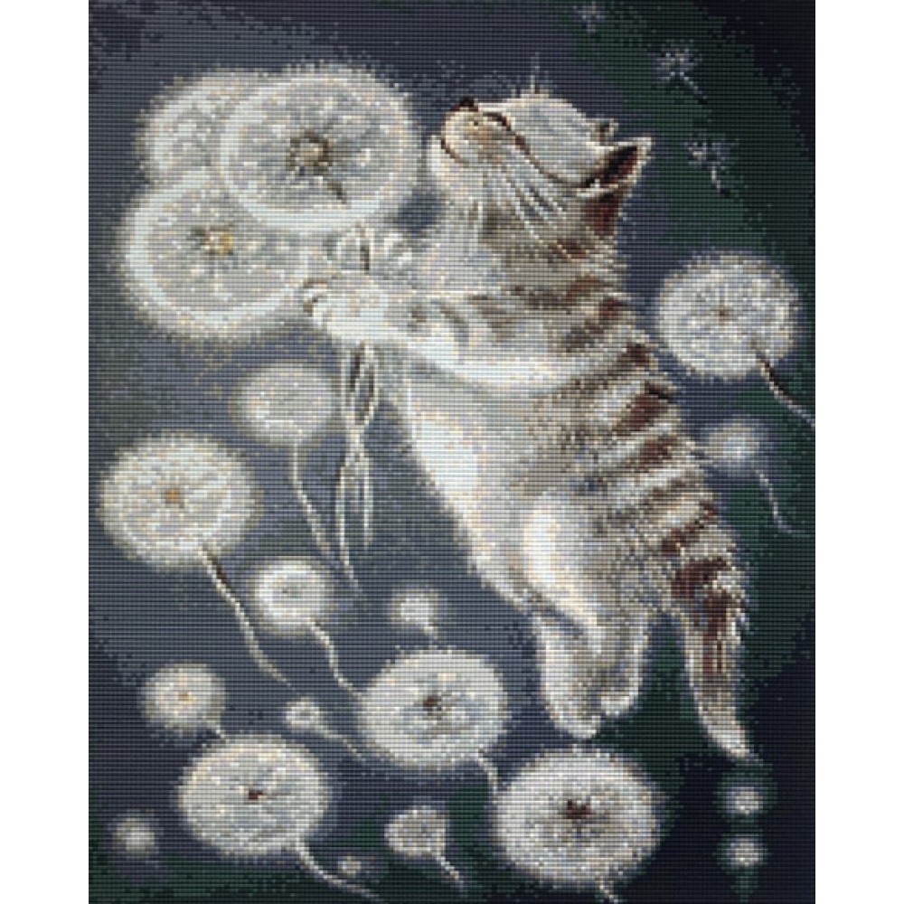 A full diamond 5D painting, each kit has a self adhesive painting with symbols and letters printed in the picture, a full set of diamonds to complete the picture, one applicator with a glue pad to help pick the diamonds up and a tray to hold the diamonds,