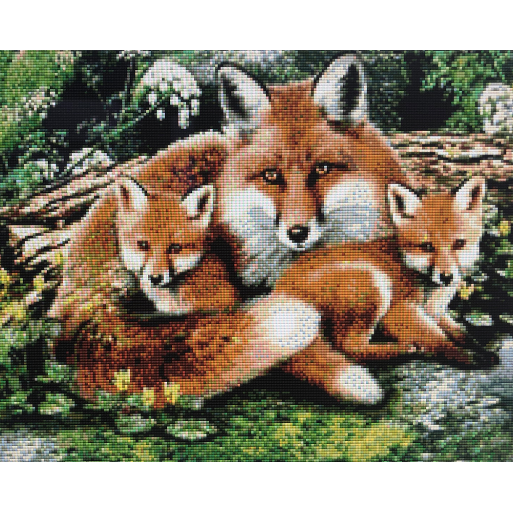 A full diamond 5D painting, each kit has a self adhesive painting with symbols and letters printed in the picture, a full set of diamonds to complete the picture, one applicator with a glue pad to help pick the diamonds up and a tray to hold the diamonds,