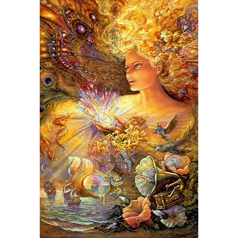 A full diamond 5D painting, each kit has a self adhesive painting with symbols and letters printed in the picture, a full set of diamonds to complete the picture, one applicator with a glue pad to help pick the diamonds up and a tray to hold the diamonds,