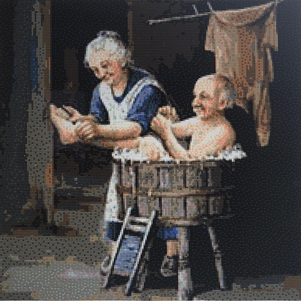 A full diamond 5D painting kit, each kit has a self adhesive painting with symbols and letters printed in the picture, a full set of diamonds to complete the picture, one applicator with a glue pad to help pick the diamonds up and a tray to hold the diamonds,