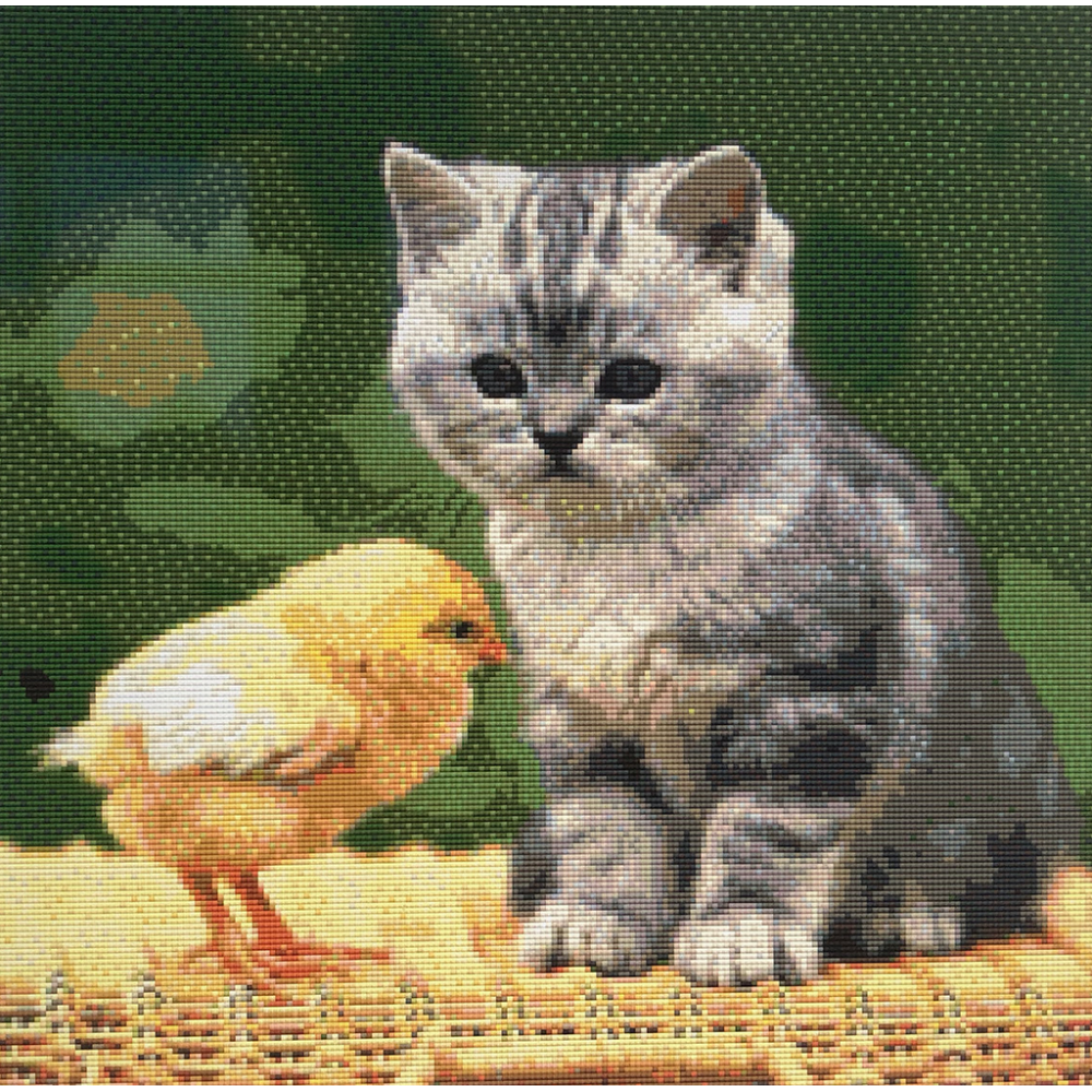 A full diamond 5D painting, each kit has a self adhesive painting with symbols and letters printed in the picture, a full set of diamonds to complete the picture, one applicator with a glue pad to help pick the diamonds up and a tray to hold the diamonds,