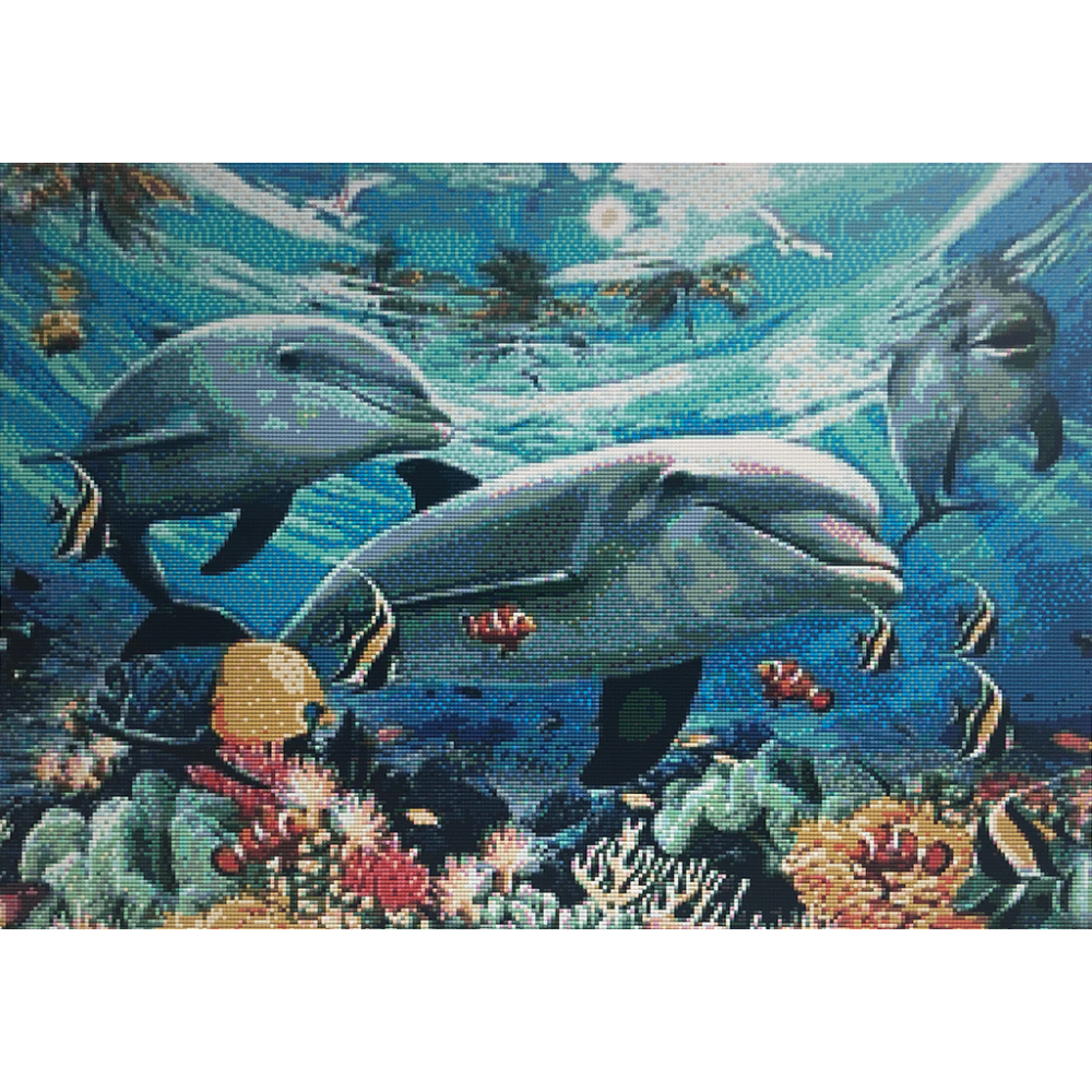 A full diamond 5D painting, each kit has a self adhesive painting with symbols and letters printed in the picture, a full set of diamonds to complete the picture, one applicator with a glue pad to help pick the diamonds up and a tray to hold the diamonds,